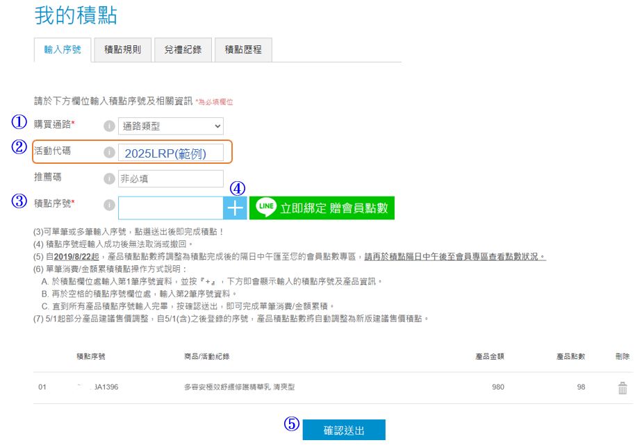 3. 輸入積點序號(共10碼),輸入後按右邊藍色+