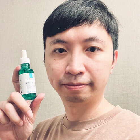 * 40位18至37歲有肌膚瑕疵(毛孔/黑頭粉刺/色素沉澱/泛紅之困擾)混合-油性肌女性受試者,每晚使用本產品一次(3 drops),使用28天及44天後經皮膚科醫師評估結果。